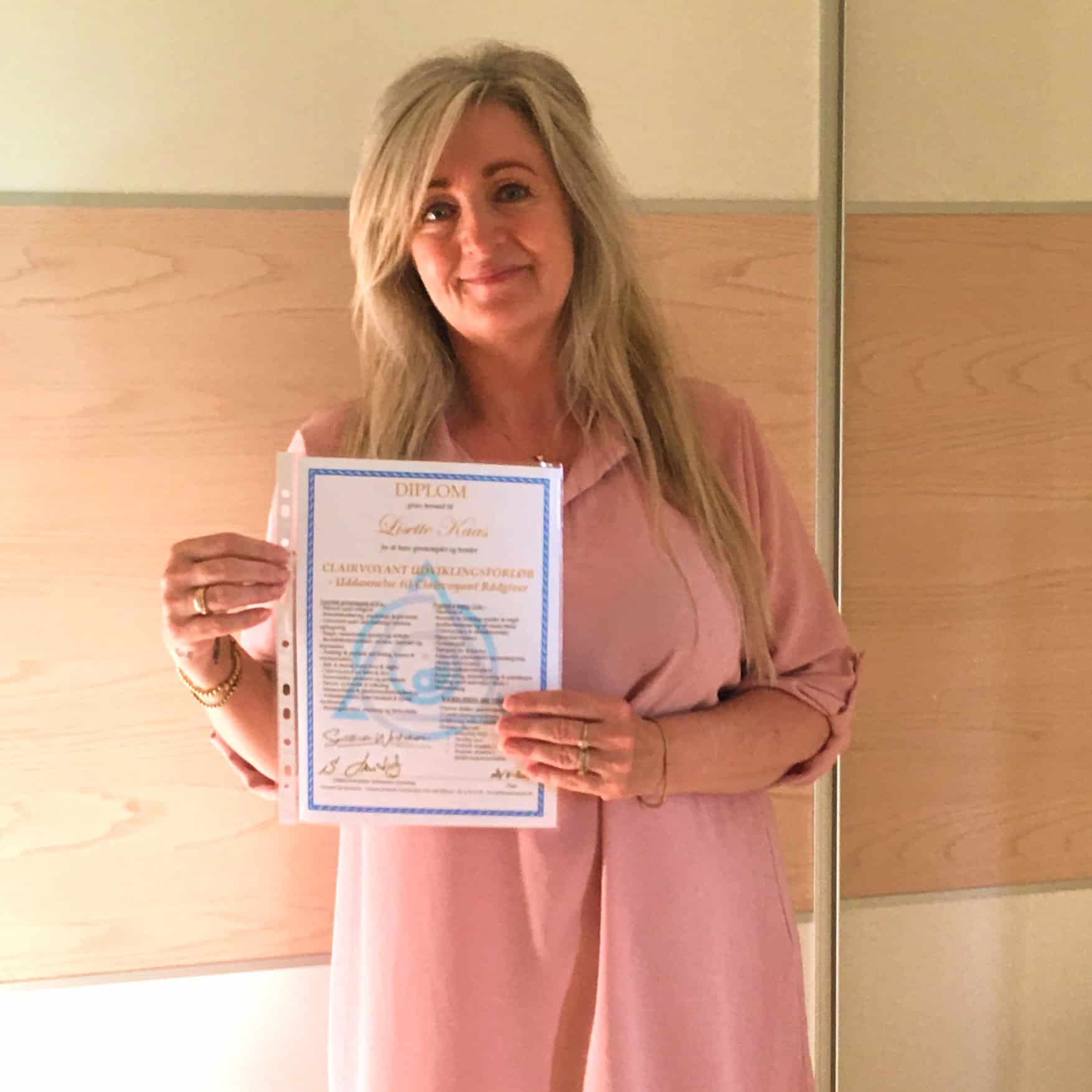 Da jeg startede som clairvoyant rådgiver, opdagede jeg, at jeg ofte fik afdøde kontakt. Jeg mærkede hvor smukt og kærligheds fyldt det var, at være kanal for de afdøde og klienten. Derfor besluttede jeg mig for at tage en Master i Medieskab hos Sebbastian Lorantius, for at blive så dygtig som muligt indenfor afdøde kontakt. At arbejde med afdøde kontakt, handler om høj etik, kærlighed og respekt for den åndelige verden og klientens sorg og savn, derfor følte jeg, at det var vigtigt at tage en særskilt master uddannelse indenfor medieskab.